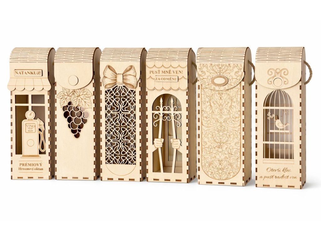 Dárková krabice, box na víno - originální obal na láhev (6 druhů)