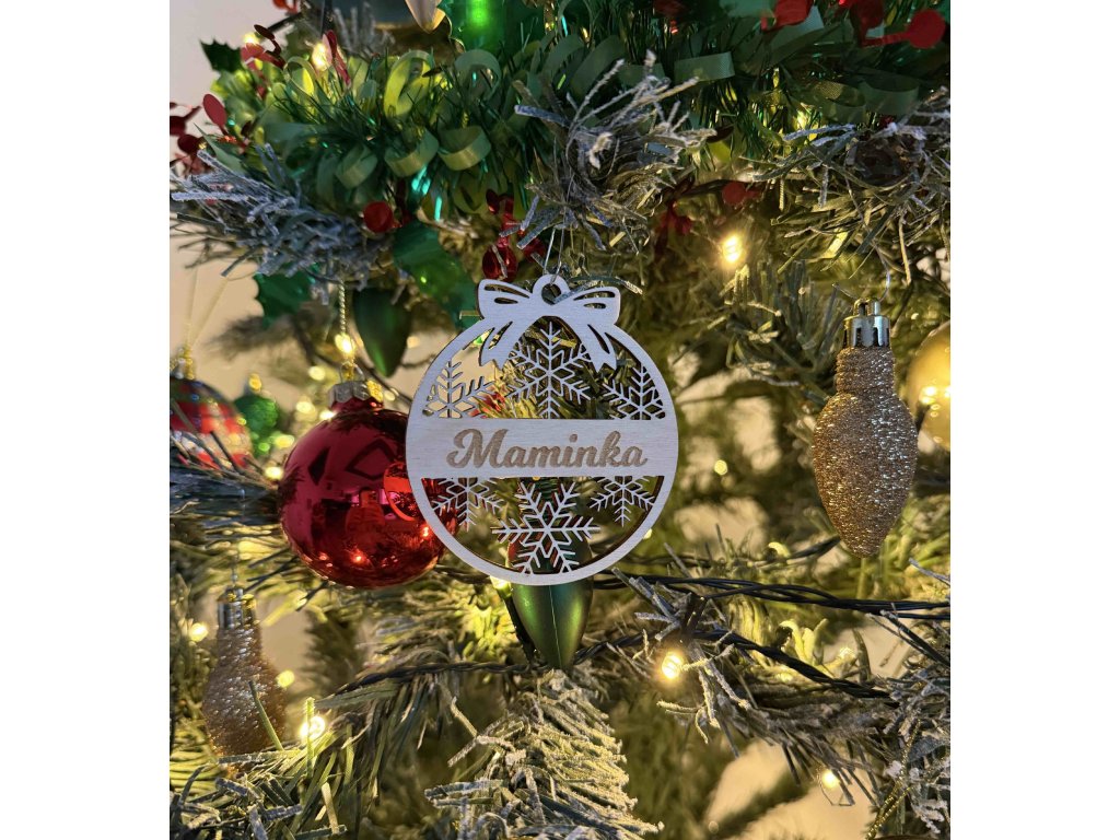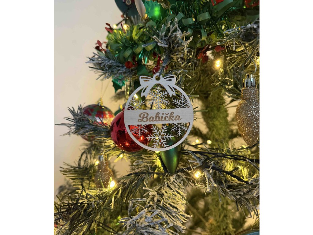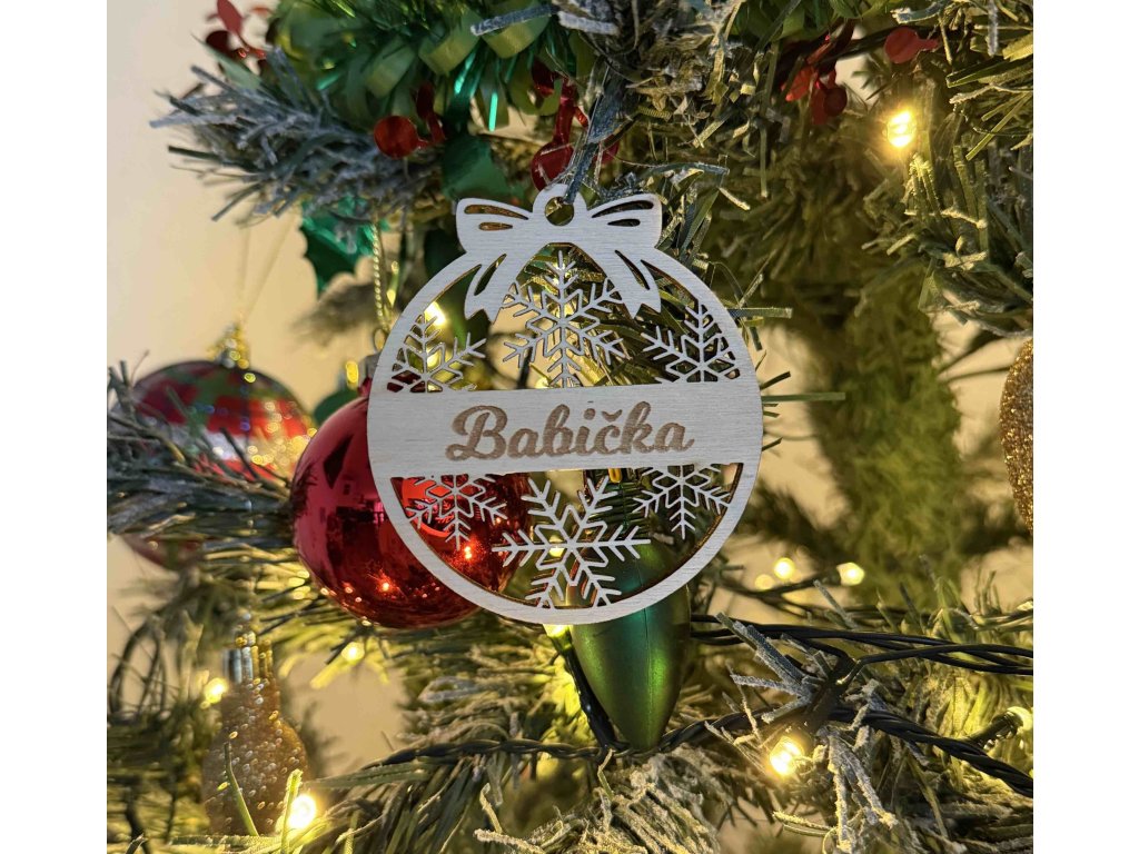 Dřevěná baňka z překližky s vlastním jménem -osobní ozdoba, která zahřeje