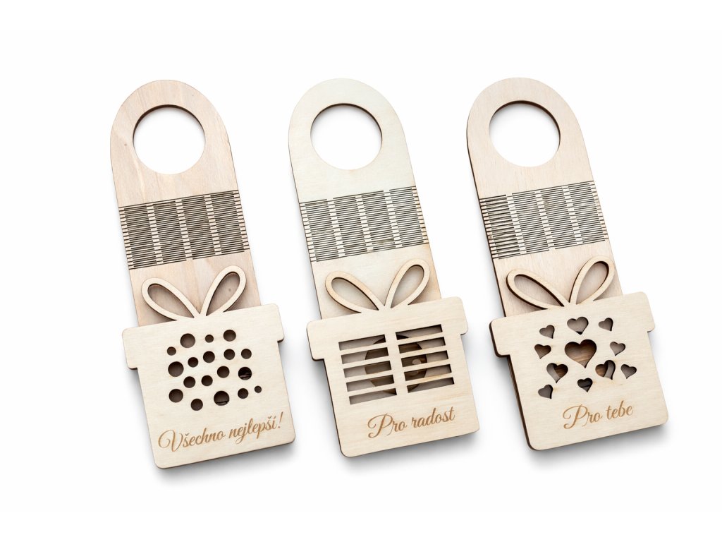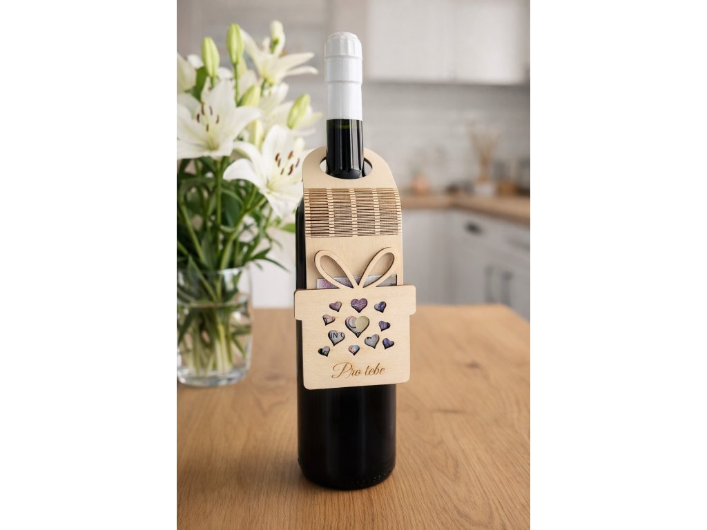 tato dřevěná cedulka na peníze na láhev dává obyčejnému darování úplně nový rozměr. Místo klasické obálky vytvoříte elegantní a nápadité překvapení, které zaujme ještě dřív, než se otevře láhev.