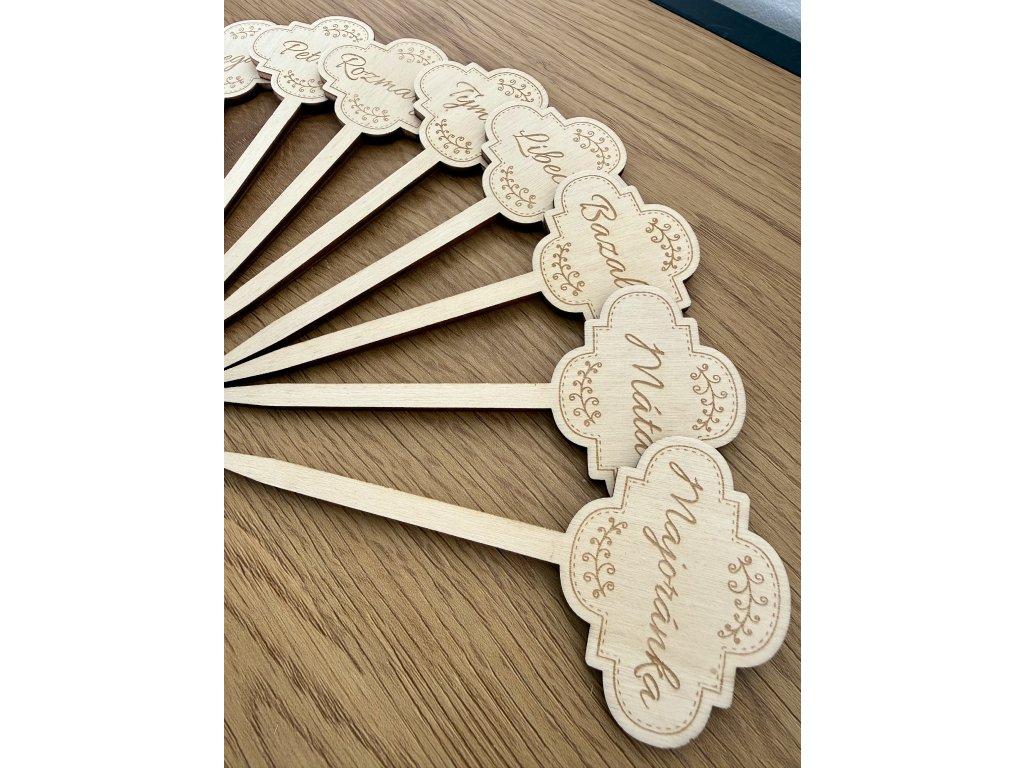 tyto dřevěné zápichy na bylinky a rostliny vám pomohou mít ve všem přehled - a zároveň dodají vaší zahrádce i květináčům krásný přírodní vzhled. Už žádné hádání, co kde roste. Každá bylinka i sazenice má své místo i jméno.