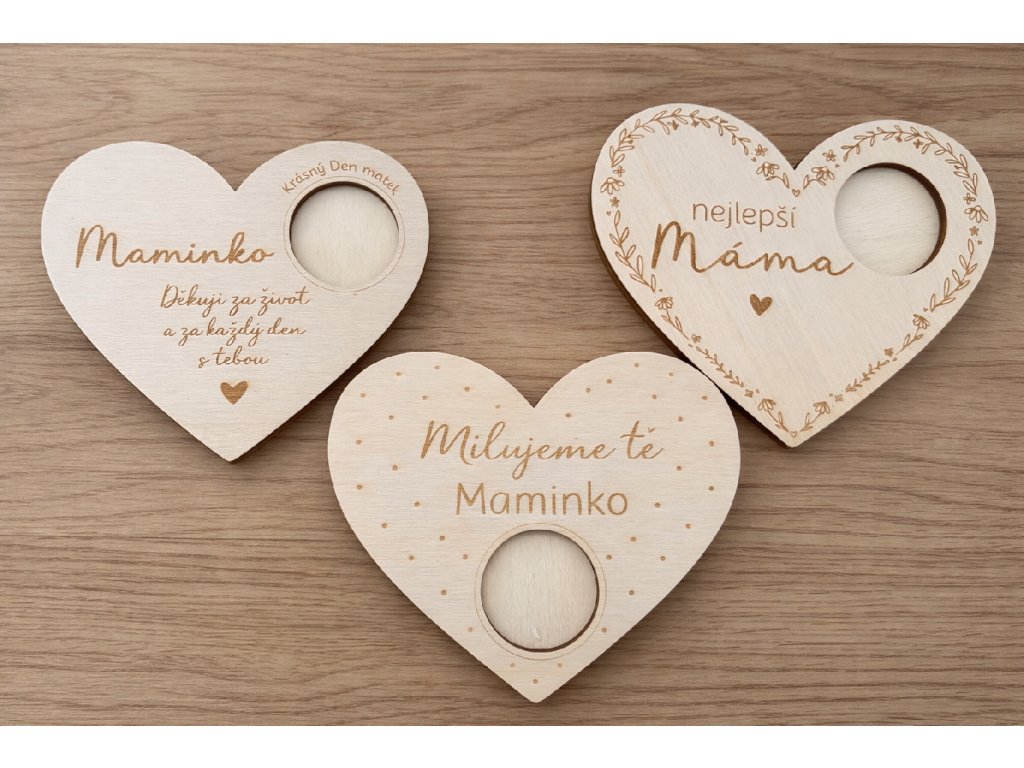 TIP: Tento svícen můžete sladit s dřevěným srdcem pro maminku s gravírováním a vytvořit tak dokonalý dárkový set.