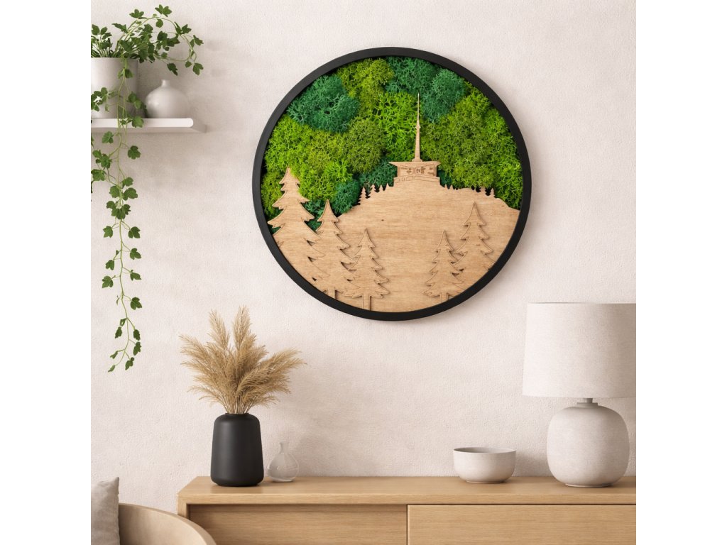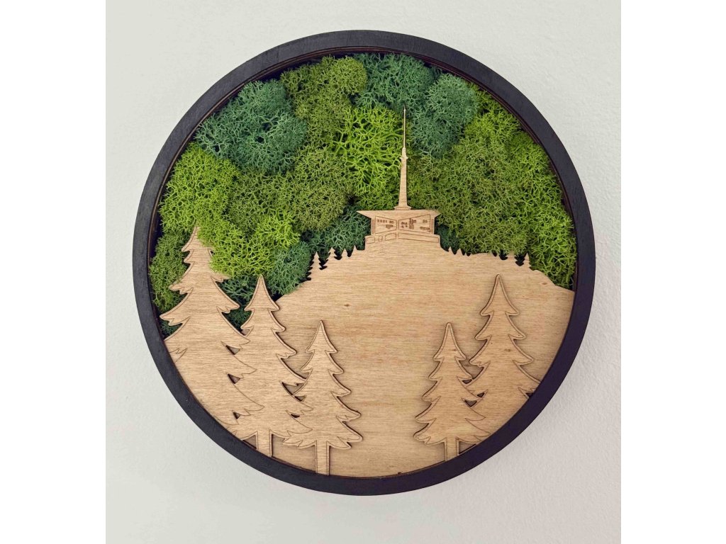 Originální mechový obraz s motivem Lysé hory přináší kousek Beskyd přímo do vašeho interiéru, kde přinese klid Beskyd - pomalý, tichý, opravdový. Autorský návrh Lysé hory kombinuje přírodní stabilizovaný mech v několika odstínech zelené s precizně vyřezanou a lehce gravírovanou siluetou lesa. Každý kus je ručně sestavený originál, který vyniká hloubkou, strukturou a přirozenou harmonií materiálů.