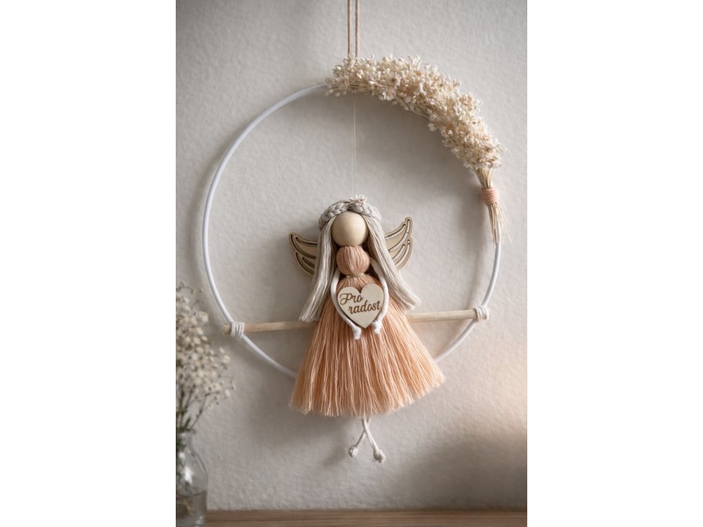 Součástí andělky je dřevěné srdíčko s možností vlastního nápisu-krátké přání, jméno, poděkování nebo osobní vzkaz, který dává dárku skutečný význam. Text je gravírován přímo do dřeva a stává se trvalou součástí andělky.