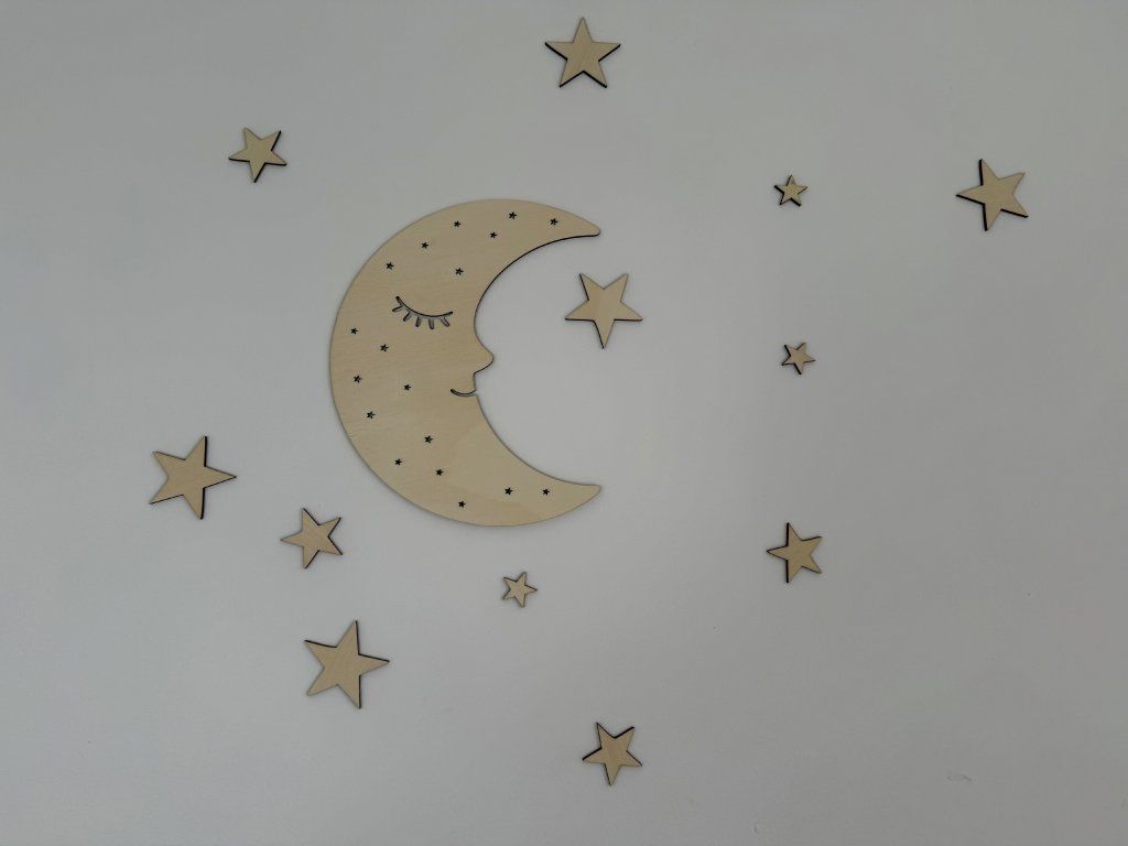 Měsíc s hvězdami-dřevěná dekorace na zeď