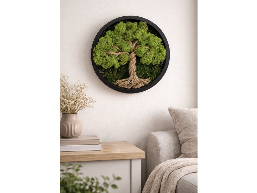 Tento mechový obraz Strom života s kořeny není jen dekorace - je to kousek přírody, který přináší do vašeho domova klid, harmonii a jedinečnou energii. Každý detail je tvořen s citem. Na obraz je použita kombinace plochého mechu a lišejníku.