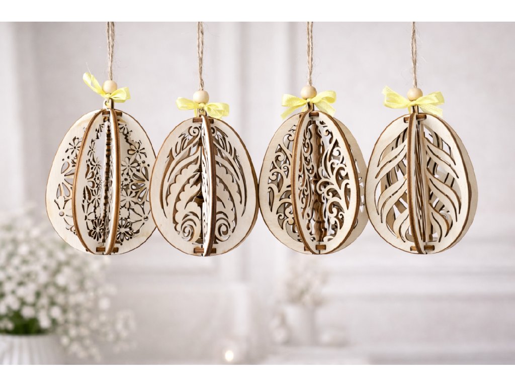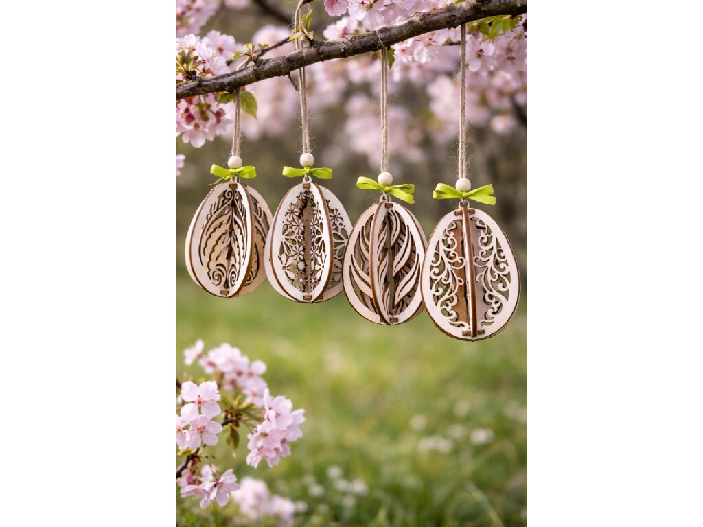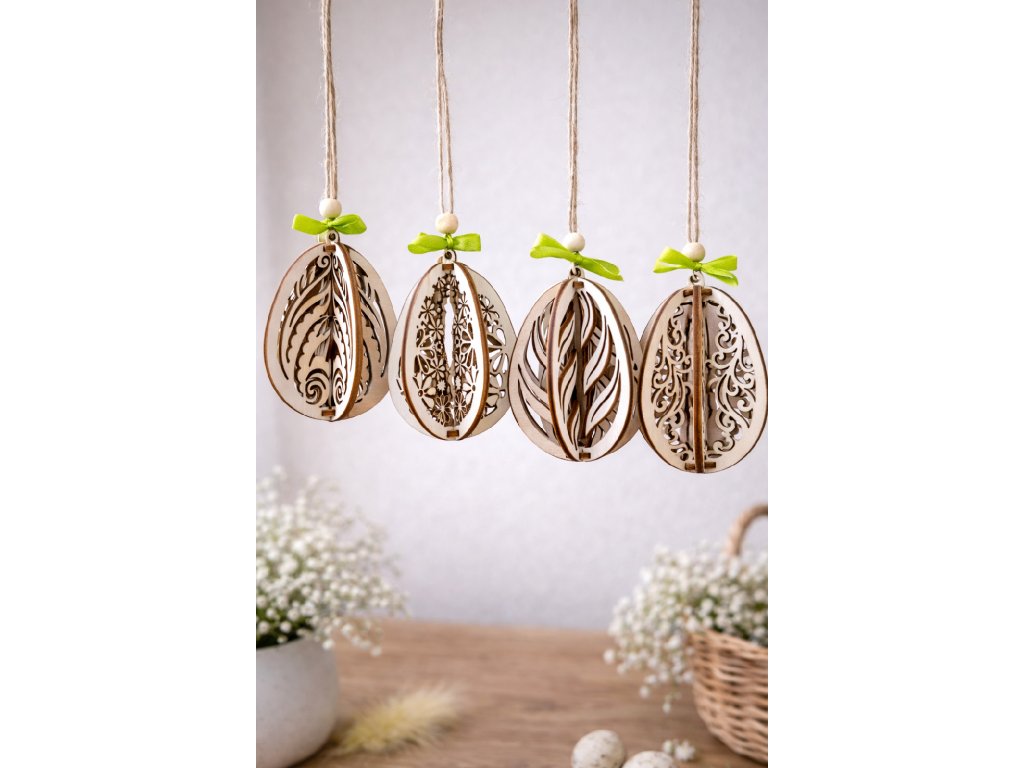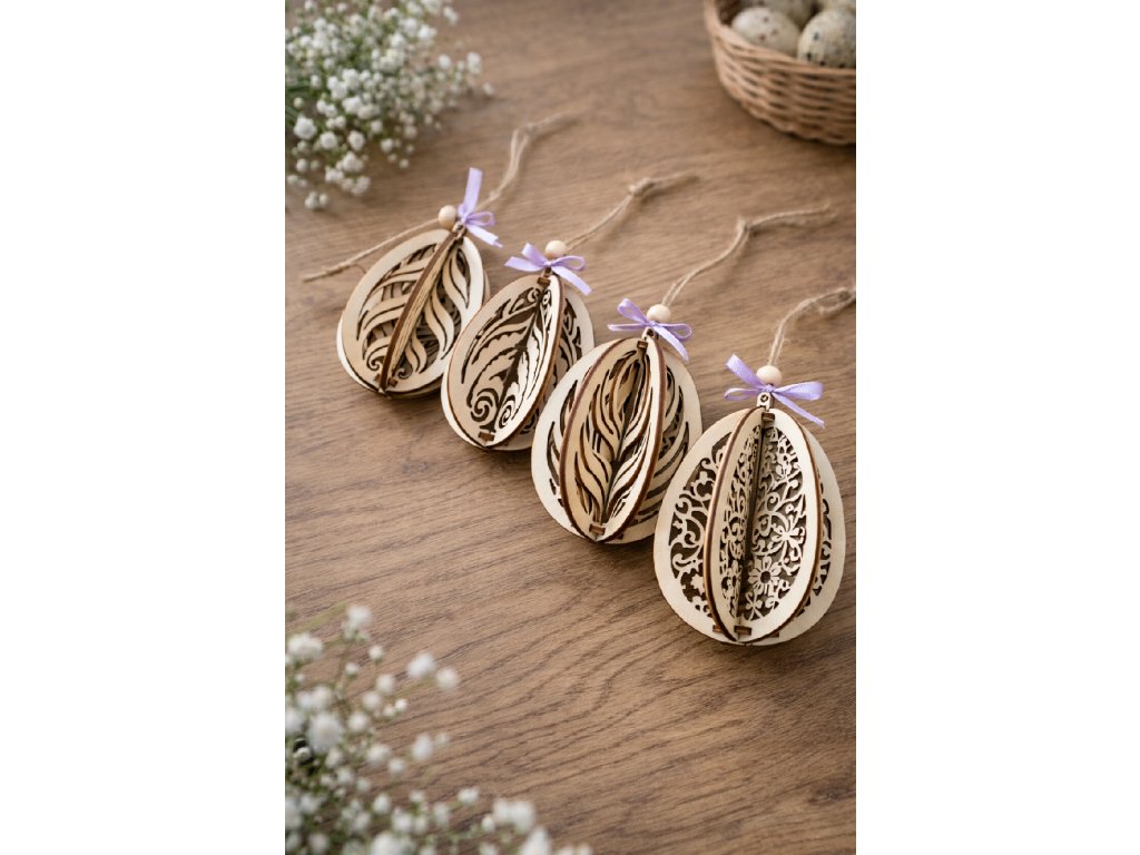 Vneste do svého aranžmá originalitu s těmito dřevěnými prostorovými vajíčky. Každé vajíčko je pečlivě složeno ze 6 dílů, díky čemuž vzniká krásný 3D prostorový efekt, který okamžitě upoutá pozornost.
