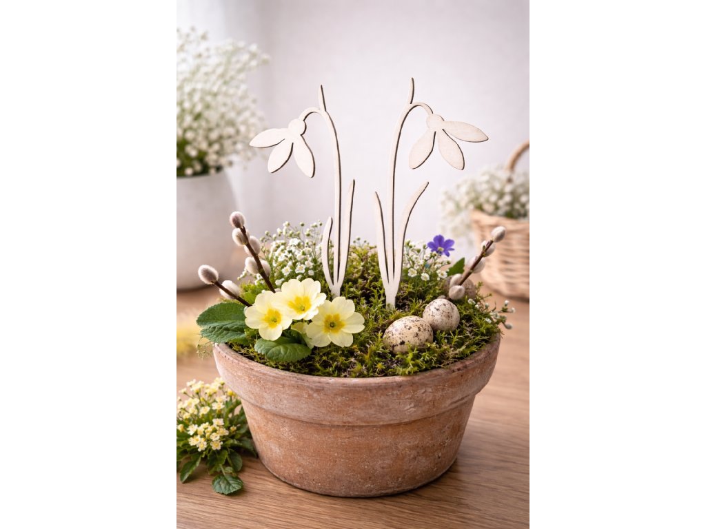 Vytvořte si něžnou jarní atmosféru s dřevěnými sněženkami v přírodní variantě. Precizně vyřezané zápichy krásně doplní květináče, jarní aranžmá i velikonoční dekorace.