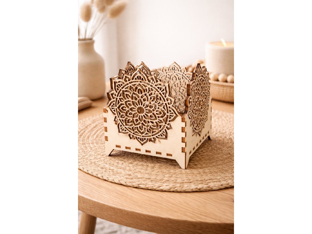 Vneste do svého domova klid, harmonii a kouzelnou atmosféru s tímto jedinečným dřevěným svícnem s motivem mandaly. Každý kus je precizně vyřezaný z přírodního materiálu a vyniká jemnými detaily, které z něj dělají nejen dekoraci, ale i silný vizuální zážitek.