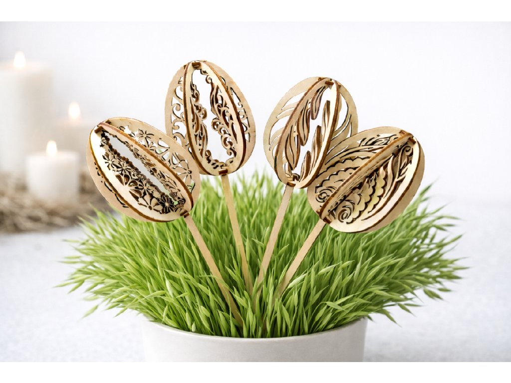 Zápichy jsou ideální do velikonočního osení, květináčů i jarních dekorací, Jemné laserové detaily podtrhují přírodní vzhled a dělají z každého usu malý designový prvek.
